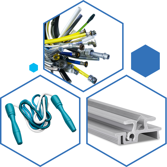 主要生產各類橡塑特種管材(氣管、水管、油管、醫療管等特種介質管和功能性管材)、異型材、標價條、展示道具、電子標牌、新型建材、運動產品、特種密封膠條,LED光電擠塑和注塑類產品,及特殊功能新材料供應。